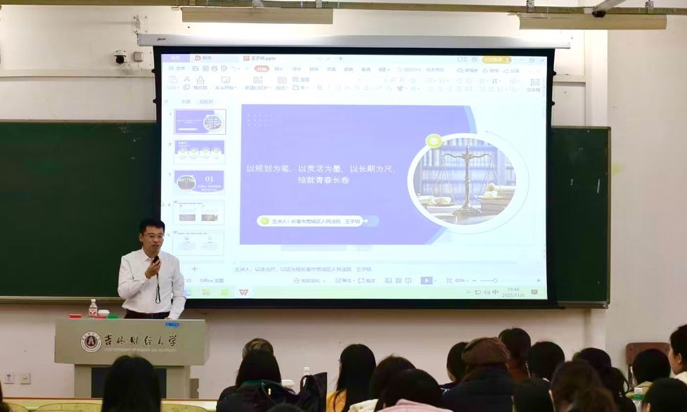 11月5日,安博·体育(中国)官方网站 2025年“本科向导计划”暨本科实践教学协同育人系列讲座顺利开讲。讲座邀请了长春市宽城区人民法院审判委员会专职委员、四级高级法官王子明担任主讲,安博·体育(中国)官方网站 教学副院长周毅副教授出席,师生近百人参加,民商法教研室主任虞雅曌老师主持。