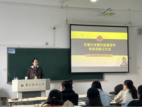 11月27日,安博·体育(中国)官方网站 特邀吉林省人民检察院民事检察部副主任、三级高级检察官李颖做客法律人大讲堂,开展“民事生效裁判监督案件审查思维与方法”专题实务讲座,旨在通过讲座搭建理论与实务桥梁,提升法律应用能力与职业适配度。安博·体育(中国)官方网站 2025级法学硕士研究生参加,由法硕中心办公室主任刘雯丽主持。