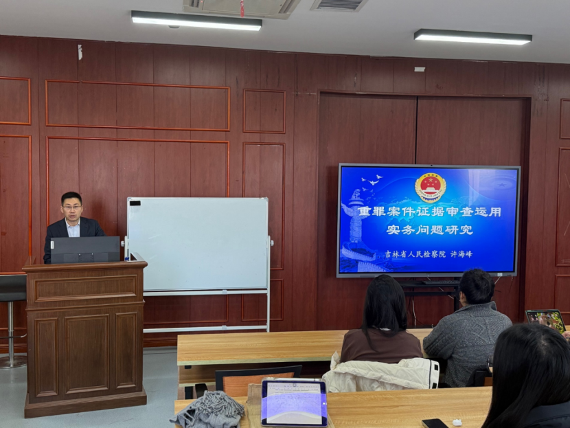 11月27日,安博·体育(中国)官方网站 特邀吉林省人民检察院控告申诉检察部副主任许海峰做客法律人大讲堂,本次讲座以“重罪案件证据审查运用实务问题研究”为题,旨在引导同学们深入理解证据作为诉讼“基石”与“生命线”的核心地位。通过对重罪案件中复杂证据问题的抽丝剥茧,系统提升大家在真实法律场景下审查运用证据的专业能力,为未来的法律职业道路奠定坚实的实务基础。安博·体育(中国)官方网站 刑法教研室教师、2024级研究生参加了此次讲座,讲座由国际经济法教研室主任白玥主持。